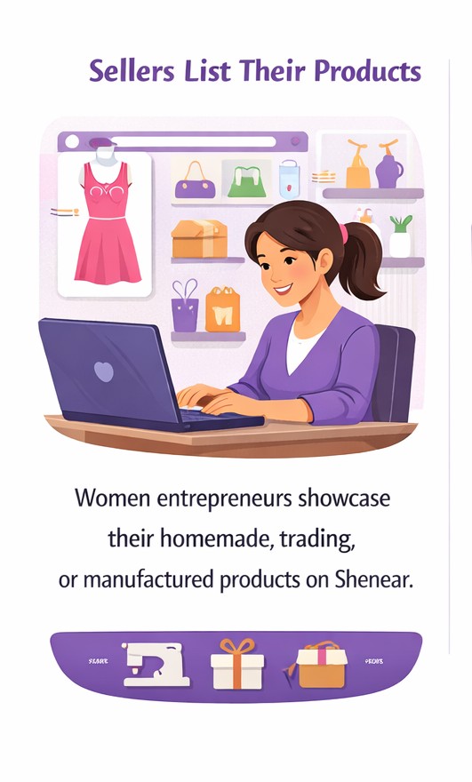 Shenear is a platform that connects customers with talented women entrepreneurs. We empower homemakers, creators, traders, and manufacturers to showcase and sell their products.